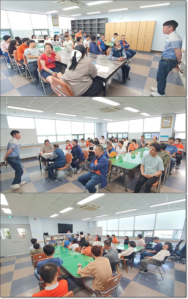 이용인 자조모임 페이지 정보 작성자 관리자 작성일24-06-07 17:05 조회2,374회 댓글0건 이전글 다음글 목록 본문 직장 생활에 있어 고민, 고충이 있으면 자조모임에서 해결해 나가고 있습니다. 먹고 싶은 식단이나 간식도 논의하여 익월에 제공할 수 있도록 하고 있습니다. 이전글 다음글 목록
