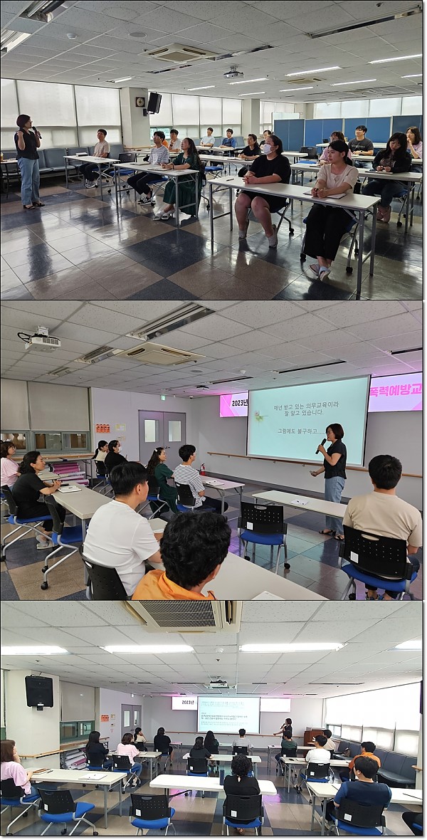 종사자 성폭력예방교육 페이지 정보 작성자 관리자 작성일23-08-14 15:50 조회2,874회 댓글0건 이전글 다음글 목록 본문 성폭력에 관하여 우리가 몰랐거나 놓쳤던 부분을 배워가는 시간이 되었습니다. 이전글 다음글 목록