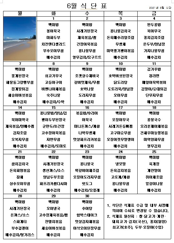 2021년 6월 식단표 페이지 정보 작성자 관리자 작성일21-06-01 14:49 조회3,748회 댓글0건 이전글 다음글 목록 본문 맛있는 점심을 먹고 힘을 내서 지금 이 시국을 잘 이겨내보아요! ^^ 이전글 다음글 목록