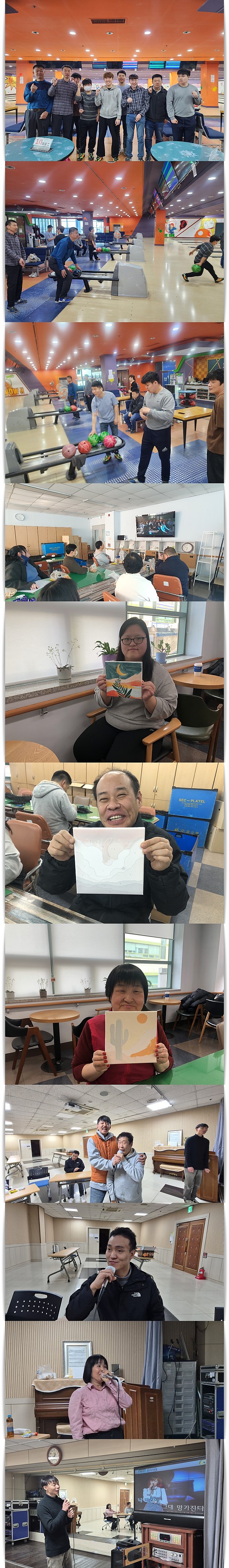 3월 이용인동아리활동 페이지 정보 작성자 관리자 작성일25-04-09 09:06 조회617회 댓글0건 이전글 다음글 목록 본문 이번 동아리활동은 볼링, 공예, 영화관람, 노래연습을 진행하였으며 이용인이 주최가 되어 활동할 수 있도록 지원하고 있습니다. 이전글 다음글 목록