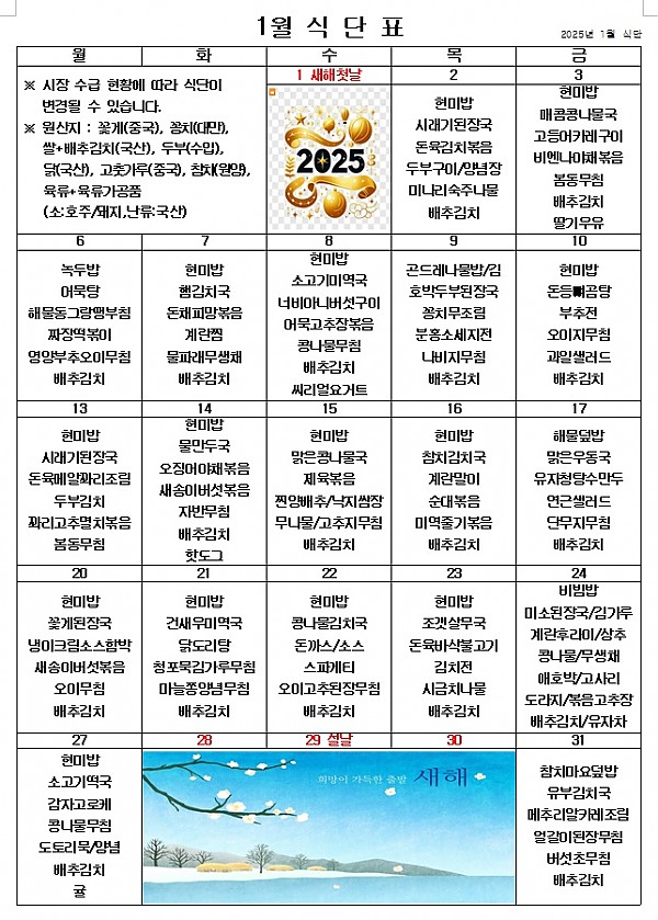 1월에도 건강한 식단, 맛있는 음식으로 우리의 몸과 마음이 건강해지면 좋겠습니다.
