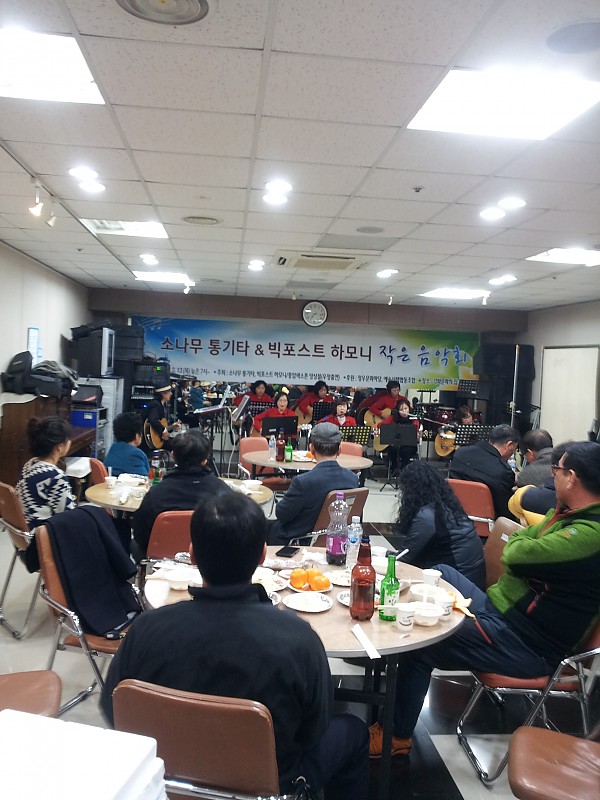 통기타소나무&빅포스트하모니 작은 음악회 개최 페이지 정보 작성자 정관용 작성일14-02-14 10:42 조회2,182회 댓글0건 이전글 다음글 목록 본문 통기타 소나무 동아리와 북광주우체국 직원분으로 구성된 빅포스트하모니팀, 그리고 풍암동색소폰앙상블이 함께하는 작은음악회가 2월 13일(목) 늦은 7시에 각화문화의집 문화관람실에서 열렸답니다. 작은 무대였지만 즐겁고 행복한 시간이 아니었나 싶네요~ 공연준비를 위해 열심히 연습하신 통기타 회원 여러분에게 박수갈채를 다시한번 보냅니다.^^ 이전글 다음글 목록