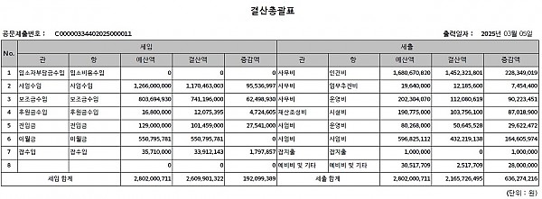 2. 공고사항 : 2024년 광주북구장애인직업재활센터 세입·세출 결산